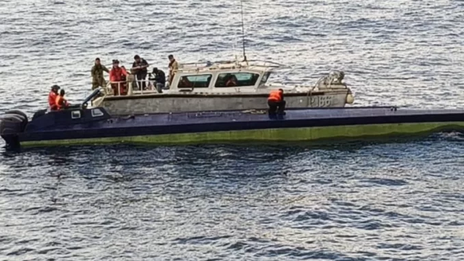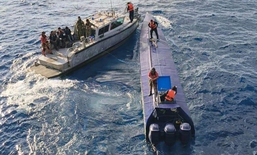 Las autoridades intervinieron la Embarcación de Bajo Perfil (LPV por sus siglas en inglés) o semisumergible, con tres tripulantes y aproximadamente 179 bultos de distintas dimensiones.