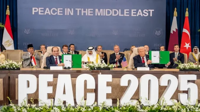 “Juntos logramos lo que todos decían que era imposible. Por fin, tenemos paz en Medio Oriente”, dijo Trump en un discurso dirigido a los mandatarios internacionales reunidos en la cita.