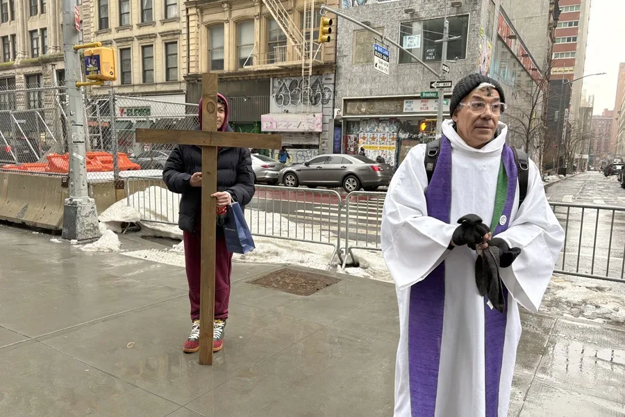 Inmigrantes y otros visitantes iban llegando poco a poco, bajo la lluvia y el frío invernal, al edificio 26 Federal Plaza en Manhattan, que alberga la sede de ICE y otras agencias federales mientras los religiosos, de pie frente a la entrada principal y sosteniendo un pequeño envase con cenizas, les preguntaban si querían participar de este tradicional ritual cristiano.