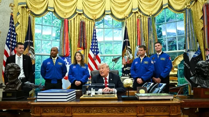 “Se necesita gente como esta para hacer grande a nuestro país. Y, repito, nunca había visto nada parecido. Todos mis conocidos querían ver el lanzamiento y, especialmente, querían ver un aterrizaje exitoso. Y, Jared (Isaacman, el administrador de la NASA), quiero felicitarte por haberlo logrado. NASA, hiciste una gran elección”, declaró Trump junto a los astronautas desde el Despacho Oval.