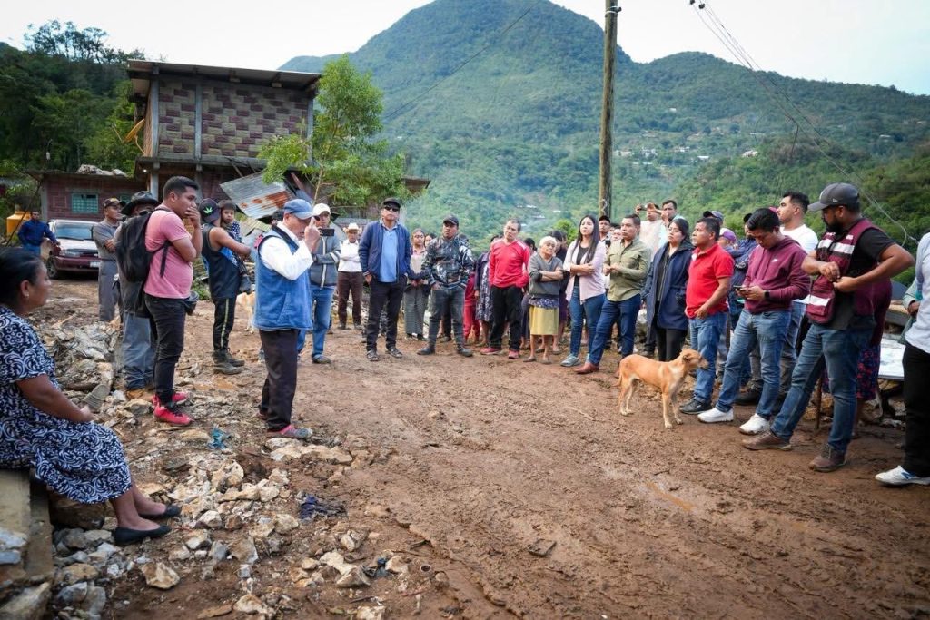 El diputado local y coordinador del Grupo Parlamentario de Morena en el Congreso de Oaxaca, Benjamín Viveros Montalvo, y las diputadas locales Elisa Zepeda Lagunas y Analy Peral Vivar, visitaron este jueves la zona afectada por el deslave ocurrido en Agua de la Rosa, localidad de Huautla de Jiménez.