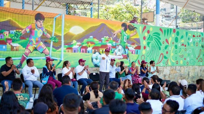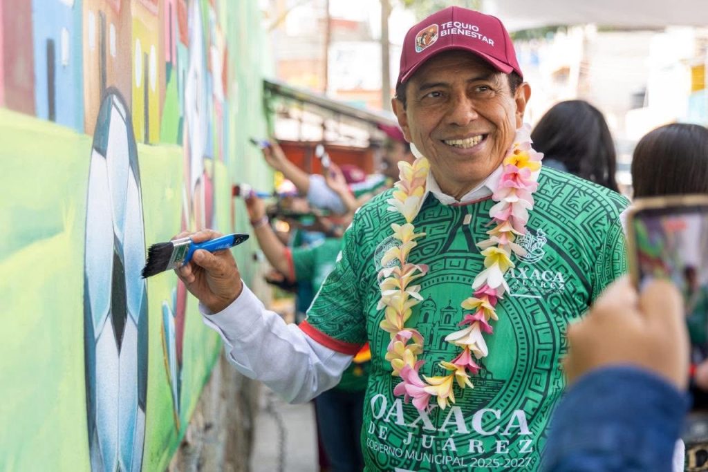 Este miércoles el gobernador Salomón Jara Cruz encabezó el Mega Tequio por la Tierra y Murales Mundialistas en la colonia Lomas de Santa Rosa de Oaxaca de Juárez, que tiene por objetivo recuperar los espacios públicos en el marco del Día Internacional de la Tierra y la Copa Mundial de Fútbol 2026.