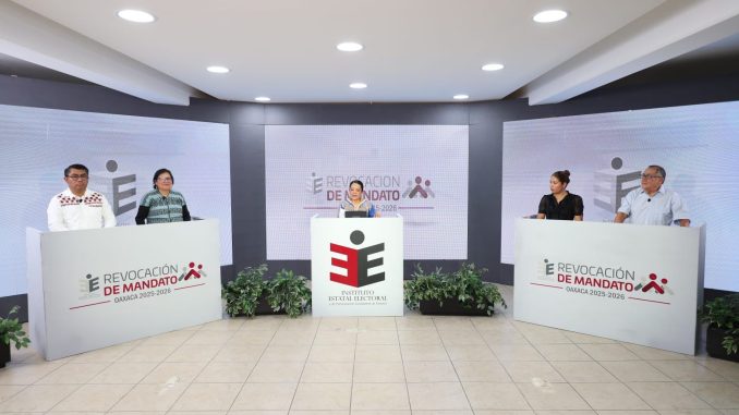 El Instituto Estatal Electoral y de Participación Ciudadana de Oaxaca (IEEPCO) llevó a cabo este domingo el primer Foro de Discusión sobre la Revocación de Mandato, un ejercicio democrático en el que se presentaron argumentos a favor y en contra de la revocación del cargo de la persona titular de la gubernatura del estado de Oaxaca.