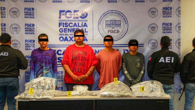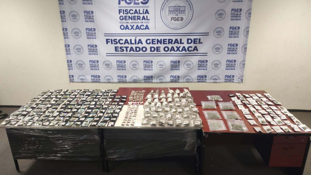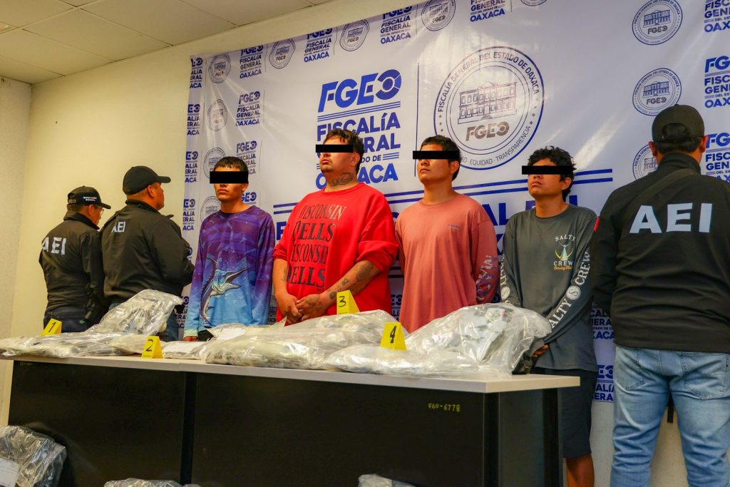 La Fiscalía General del Estado de Oaxaca (FGEO) realizó el aseguramiento de más de 300 dosis de droga, además de la detención de cuatro hombres que presumiblemente pertenecen a la principal célula delictiva dedicada al narcomenudeo en San José del Pacífico, en la Sierra Sur de la entidad.