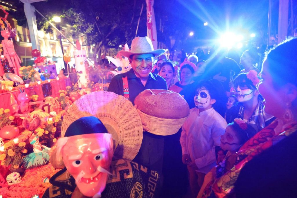 En el zócalo capitalino, el mandatario estatal y la presidenta del DIF Oaxaca inauguraron el monumental altar de muertos que adorna el patio central de Palacio de Gobierno, el cual puede ser visitado, a partir de este miércoles, por las y los oaxaqueños, así como turistas nacionales e internacionales.
