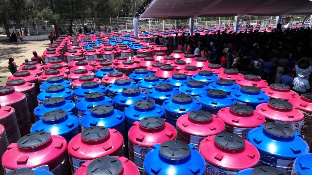 El gobernador de Oaxaca, Salomón Jara Cruz, entregó este sábado 1, 037 tinacos para el almacenamiento de agua durante esta temporada de estiaje, en San Antonio de la Cal y el Fraccionamiento El Rosario de San Sebastián Tutla.