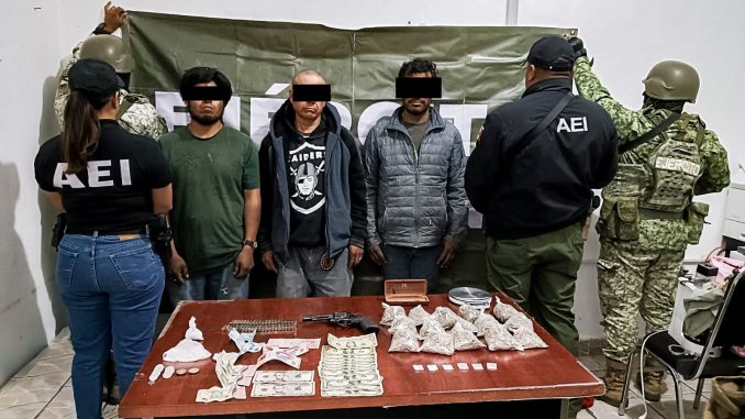 La Fiscalía General del Estado de Oaxaca (FGEO) en coordinación con fuerzas de seguridad federal, ejecutó una orden de cateo en un domicilio del municipio de Zimatlán de Álvarez, logrando el decomiso de estupefacientes, dinero en efectivo y armas, así como la captura de tres presuntos implicados.