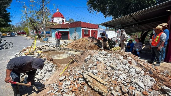 La Comisión Estatal del Agua para el Bienestar (Ceabien) y Sistema Operador de los Servicios de Agua Potable y Alcantarillado (Soapa), realizan trabajos de limpieza en la línea de distribución de la agencia municipal de San Juan Chapultepec, Oaxaca de Juárez.