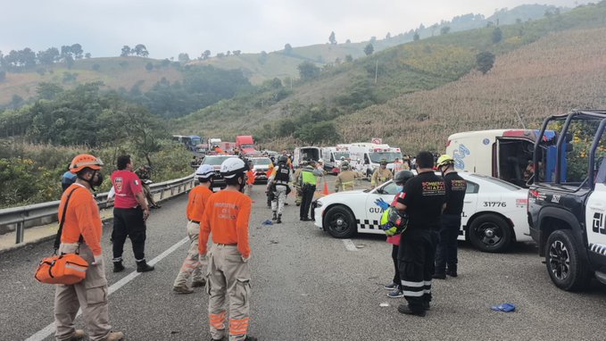 Al menos dos muertos y 22 heridos fue el saldo que dejó una volcadura de un autobús que trasladaba a un grupo de personas indígenas mayas tzotzil y tzeltal, en la autopista de San Cristóbal de las Casas, Chiapas.
